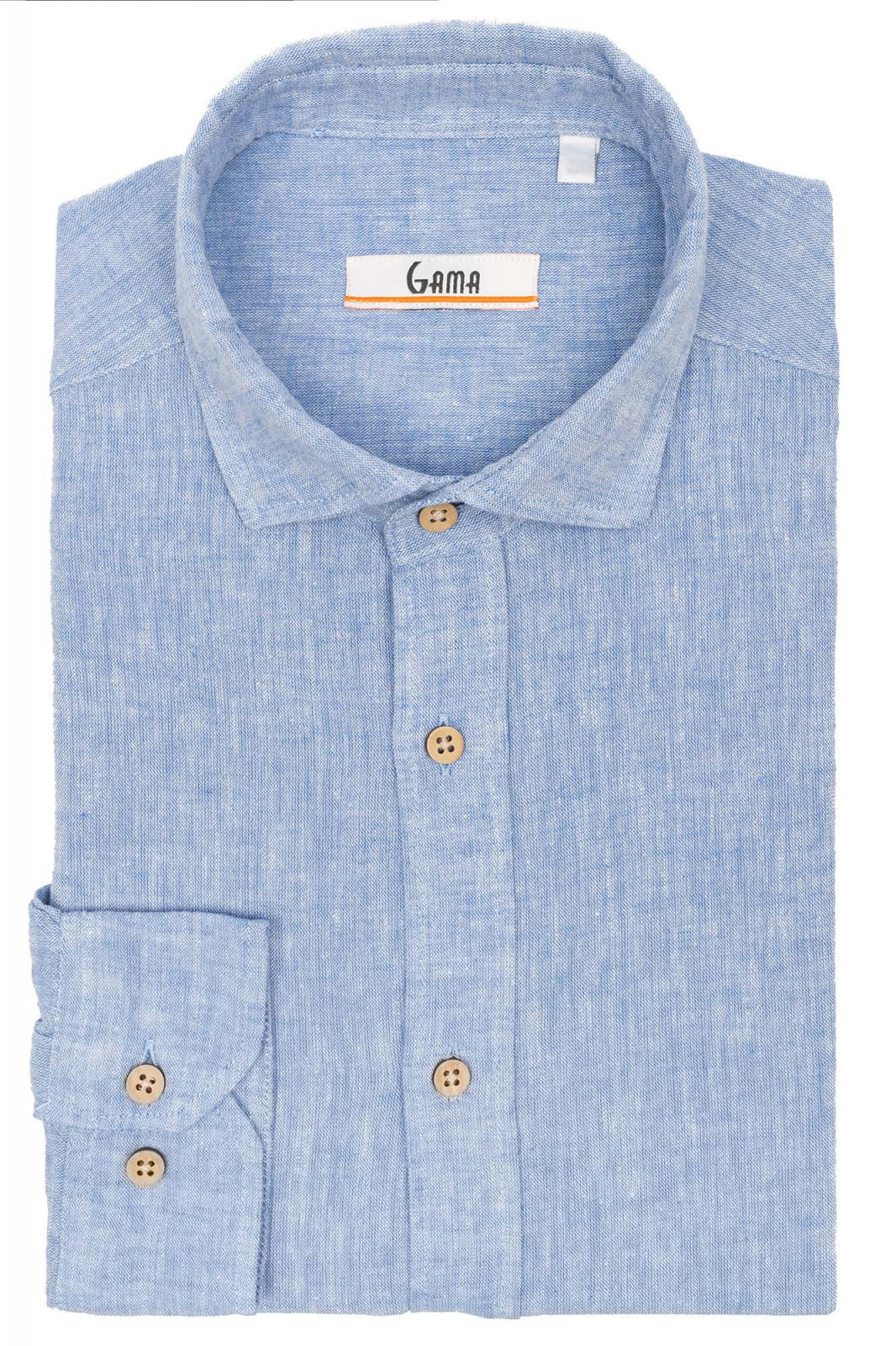 GAMA Camasa barbati casual regular fit albastru-jeans din in