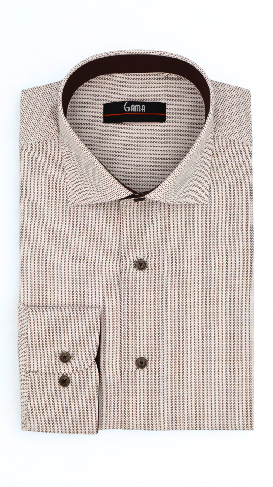 Designul clasic, completat de nasturii în tonuri maro, permite purtarea atât cu cravată, pentru un look business impecabil, cât și fără cravată, pentru un stil relaxat, dar atent construit. Astfel, cămașa devine o piesă extrem de versatilă, adaptată atât contextelor formale, cât și celor smart-casual.