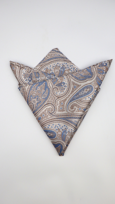 Batista Gama din mătase naturală ivory cu model paisley cu accente bleu & bej - rafinament luminos, cu profunzime discretă
