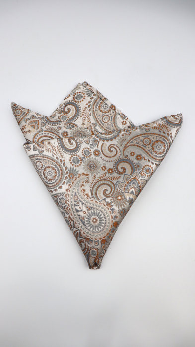 GAMA Batista din mătase naturală paisley ivory cu accente gri & cărămiziu