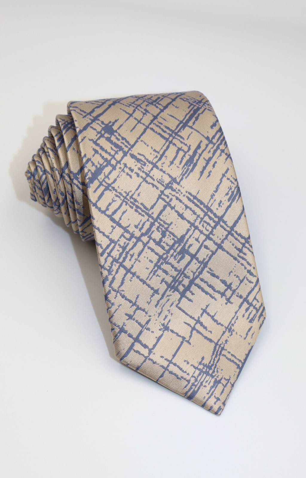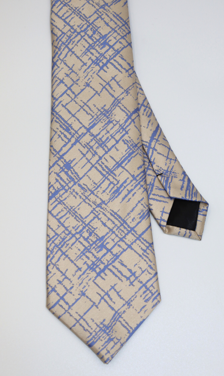 GAMA Cravata crem cu imprimeu abstract albastru