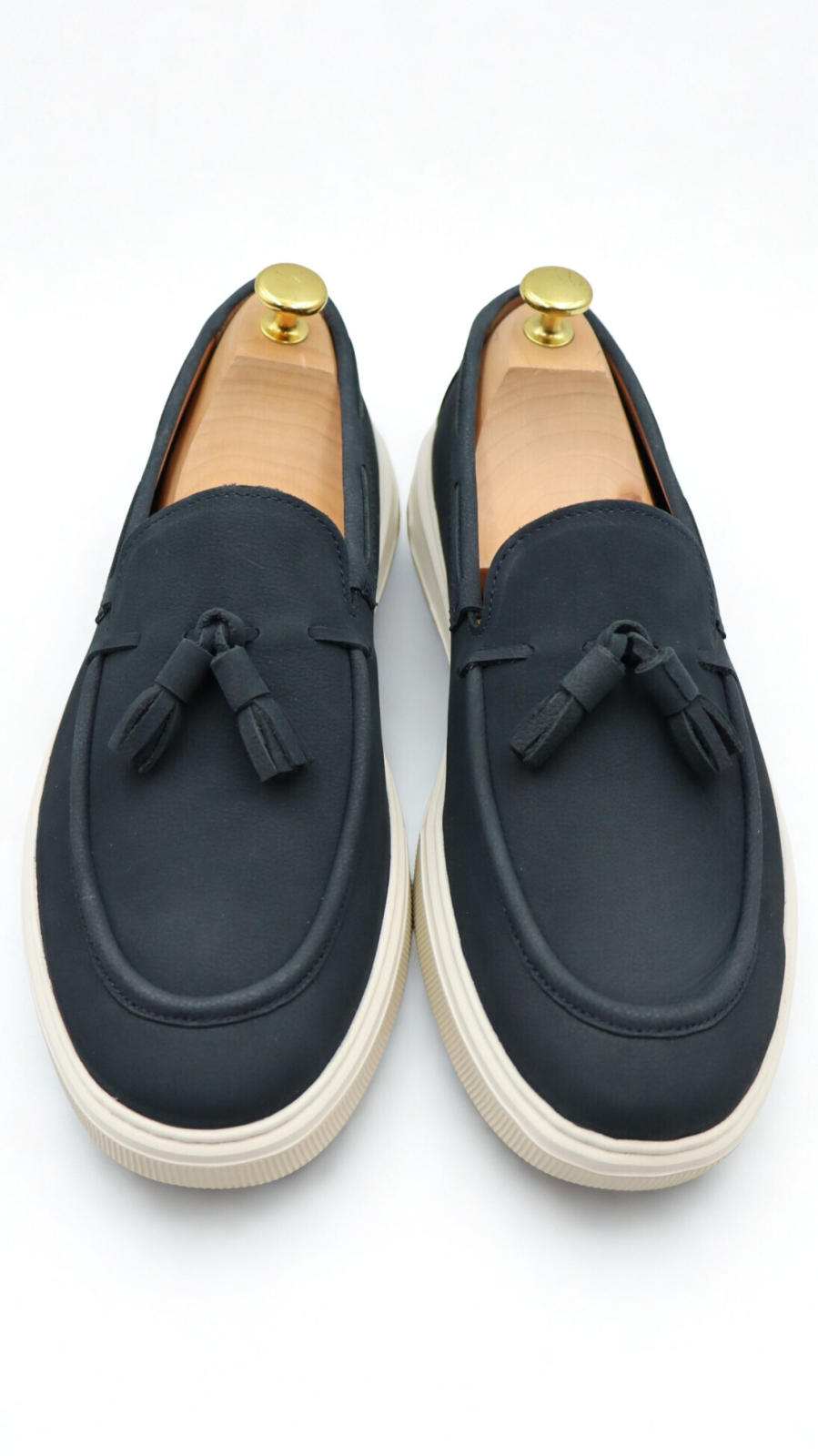 Combina-i cu pantaloni bleumarin sau gri închis și un pulover fin alb, gri deschis sau bleumarin. Detaliul tassel adaugă subtil rafinament.
