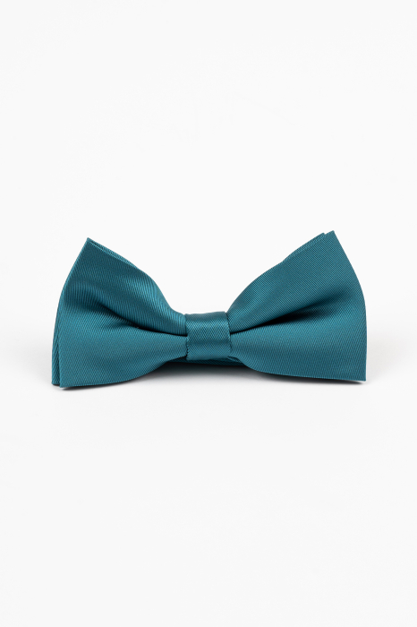 Papionul turcoaz este un accent cromatic rafinat, ideal pentru a sparge sobrietatea unei ținute clasice.