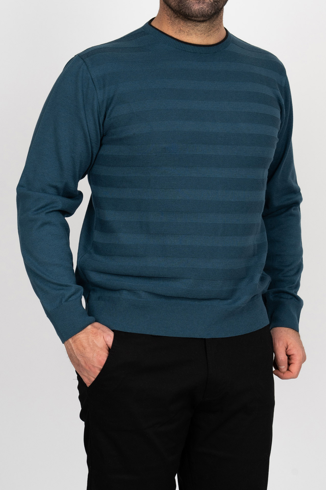 Puloverul bărbătesc  petrol este alegerea perfectă pentru cei care apreciază simplitatea elegantă și confortul de zi cu zi. Confecționat dintr-un material moale și plăcut la atingere, oferă o senzație de confort pe tot parcursul zilei și un aspect îngrijit, indiferent de context. Designul său clasic și croiala echilibrată îl fac ușor de integrat atât în ținutele casual, cât și în cele office. Este o piesă de bază în garderoba oricărui bărbat, ce îmbină armonios rafinamentul tradițional cu lejeritatea modernă.